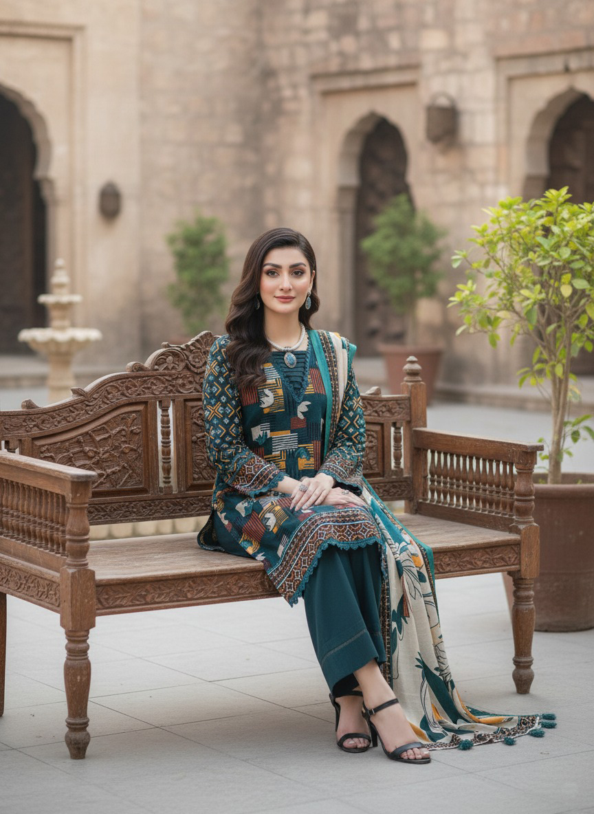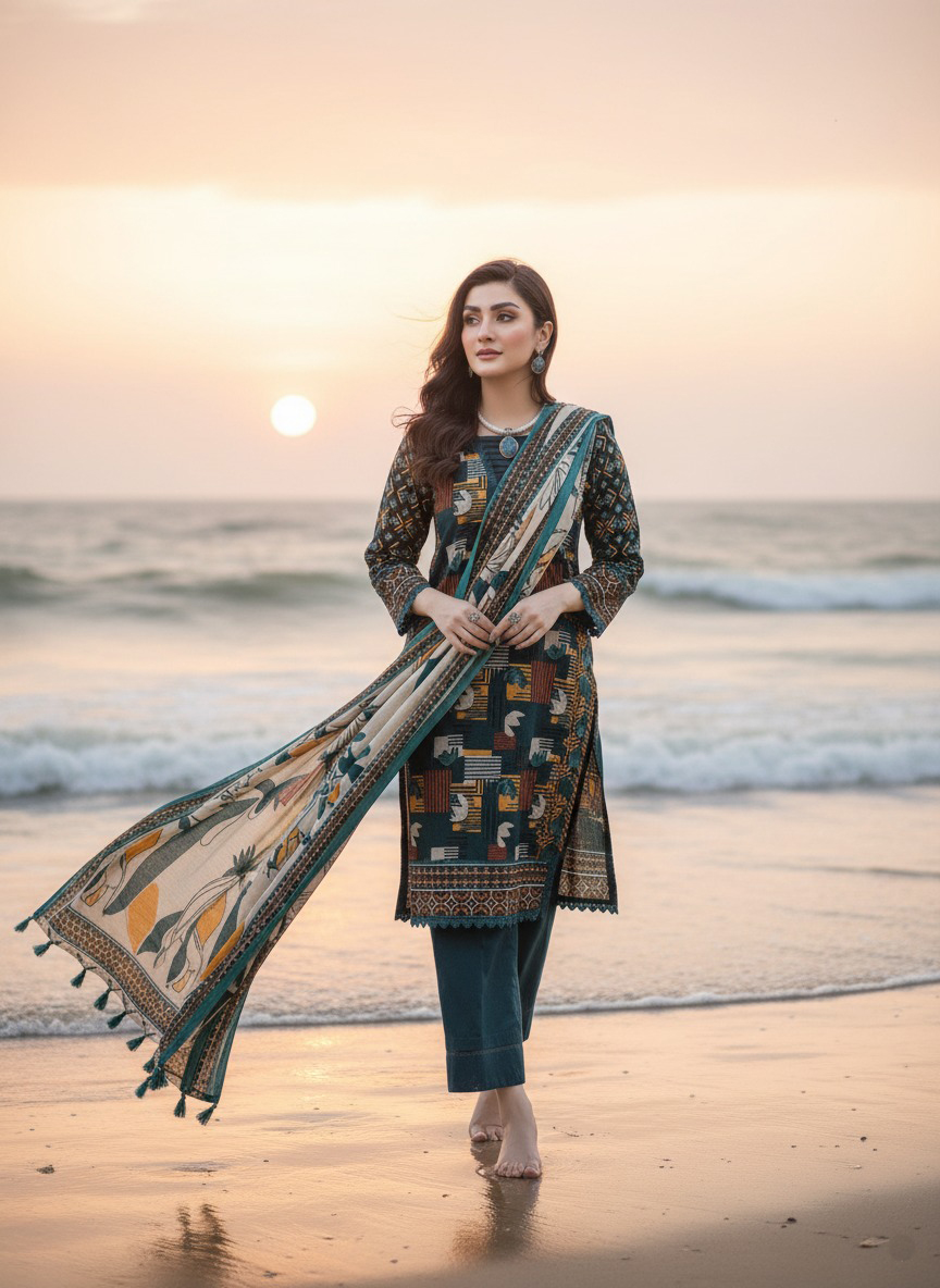 Note:Â The embroidery shirt has been styled in the image for photography and illustrative purposes. The standard style comes as a long-sleeved kameez.